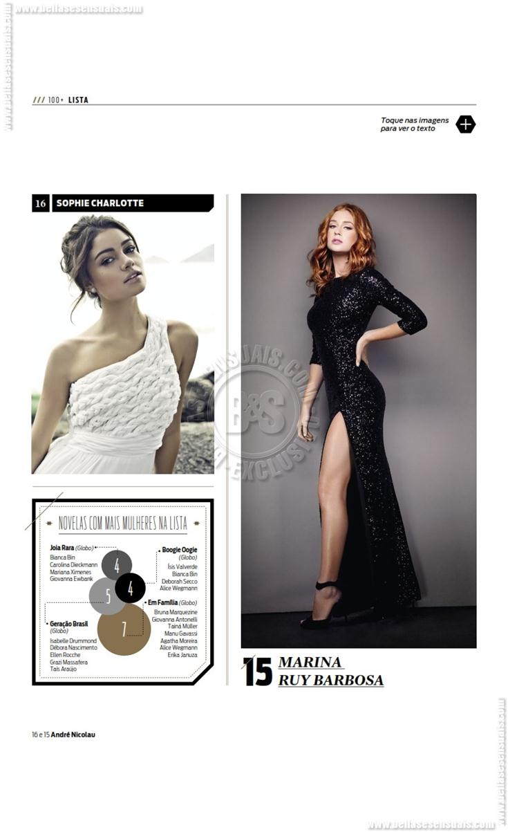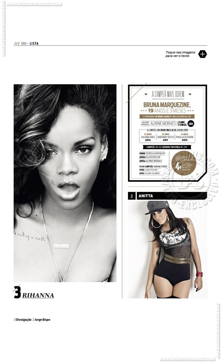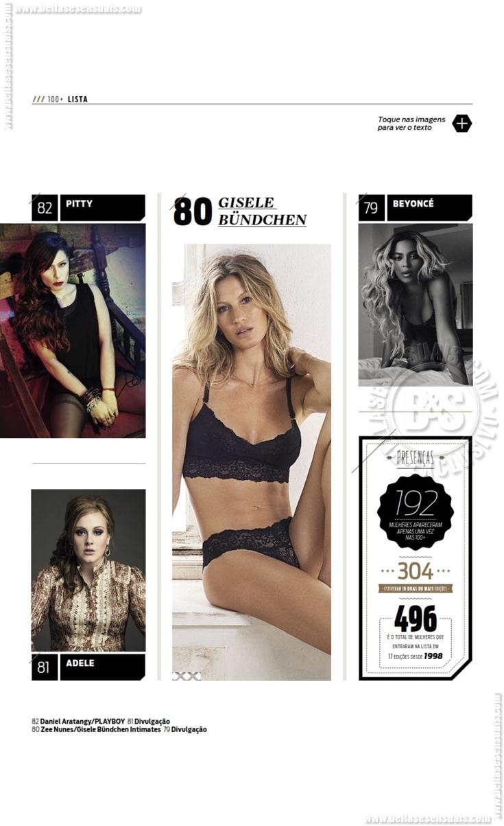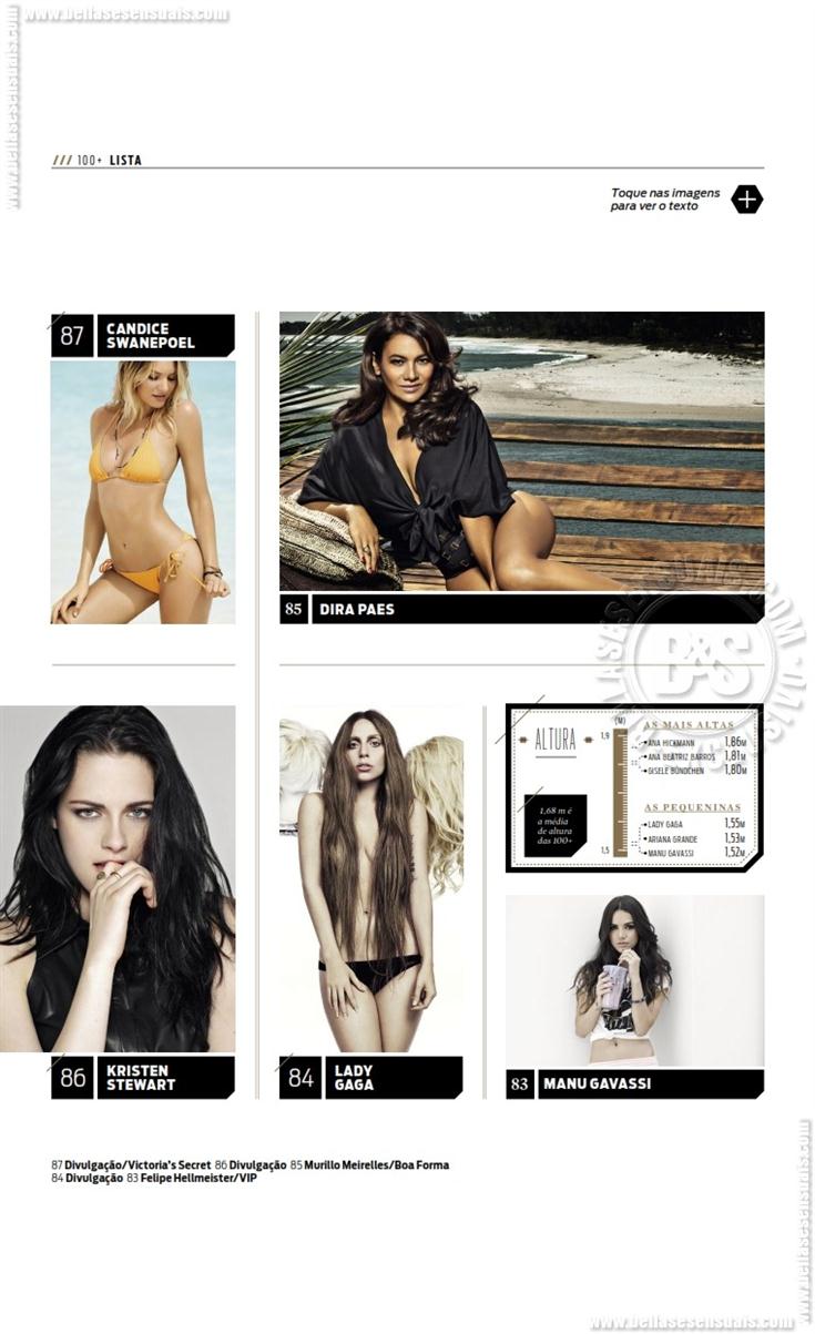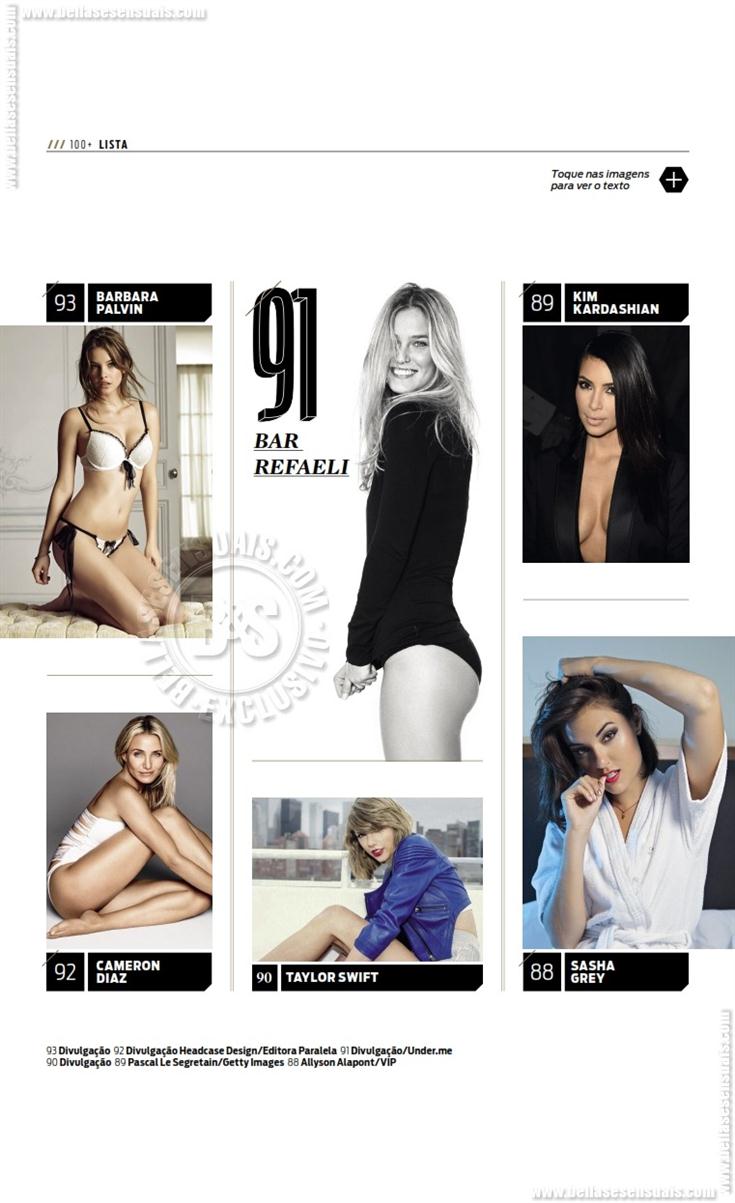 Bruna Marquezine, Anitta, Rihanna, Grazi Massafera, Claudia Leitte, Shakira, Juliana Paes, Ivete Sangalo, Isis Valverde, Giovanna Antonelli, Sandy, Paolla Oliveira, Deborah Secco, Cleo Pires, Marina Ruy Barbosa, Sophie Charlotte, Maria Casadevall ,Fernanda Lima ,Tainá Müller ,Carolina Dieckmann ,Ana Hickmann, Mariana Ximenes, Giovanna Ewbank, Fernanda Paes Leme, Luana Piovani, Lua Blanco, Angelina Jolie, Megan Fox, Alice Wegmann, Milena Toscano, Fiorella Mattheis, Adriana Lima, Isabelle Drummond, Adèle Exarchopoulos, Paula Fernandes, Katy Perry, Adriana Birolli, Scarlett Johansson, Ellen Rocche, Alinne Rosa, Ariana Grande, Fernanda Gentil, Carol Castro, Jennifer Lopez, Sophia Abrahão, Jennifer Lawrence, Alinne Moraes, Camila Pitanga, Emma Watson, Giovanna Lancellotti, Selena Gomez, Amanda Seyfried, Miley Cyrus, Emma Stone, Sabrina Sato, Adriana Galisteu, Paloma Bernardi, Jessica Alba, Renata Fan, Mariana Rios, Anne Hathaway, Bruna Linzmeyer, Taís Araújo, Juliana Alves, Ex-BBB Clara Aguilar, Bianca Bian, Juliana Silveira, Carol Dias, Ex-BBB Franciele Almeida, Nicole Bahls, Mel Fronckowiak, Eva Andressa, Juliana Paiva, Erika Januza, Agatha Moreira, Carol Nakamura, Carolina Portaluppi (filha de Renato Gaúcho), Kate Upton, Beyoncé, Gisele Bündchen, Adele, Pitty, Malu Gavassi, Lady Gaga, Dira Paes, Kristen Stewart, Candice Swanepoel, Sasha Grey, Kim Kardashian, Taylor Swift, Bar Refaeli, Cameron Diaz, Barbara Palvin, Thaila Ayala, Mila Kunis, Daniele Suzuki, Eva Green, Ana Beatriz Barros, Débora Nascimento, Kate Moss.