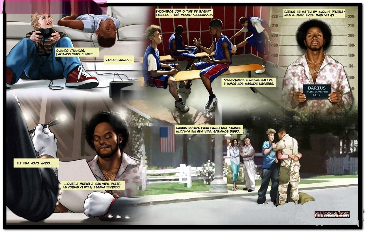 Quadrinhos Eróticos inter-racial de Jaguar contando a história de Darius um homem negro muito forte que passou um tempo nos quadros dos fuzileiros e tentou se redimir de algumas besteiras que fez no passado. Na sua volta ele reencontra seu amigo Thomas e vai passar uns dias na mansão do amigo que é casado com uma mulher muito gostosa e safada. A esposa do Thomas fica taradona quando vê a anaconda de Darius, não deu outra a safada casada vai entra no cacetão do amigo do marido…