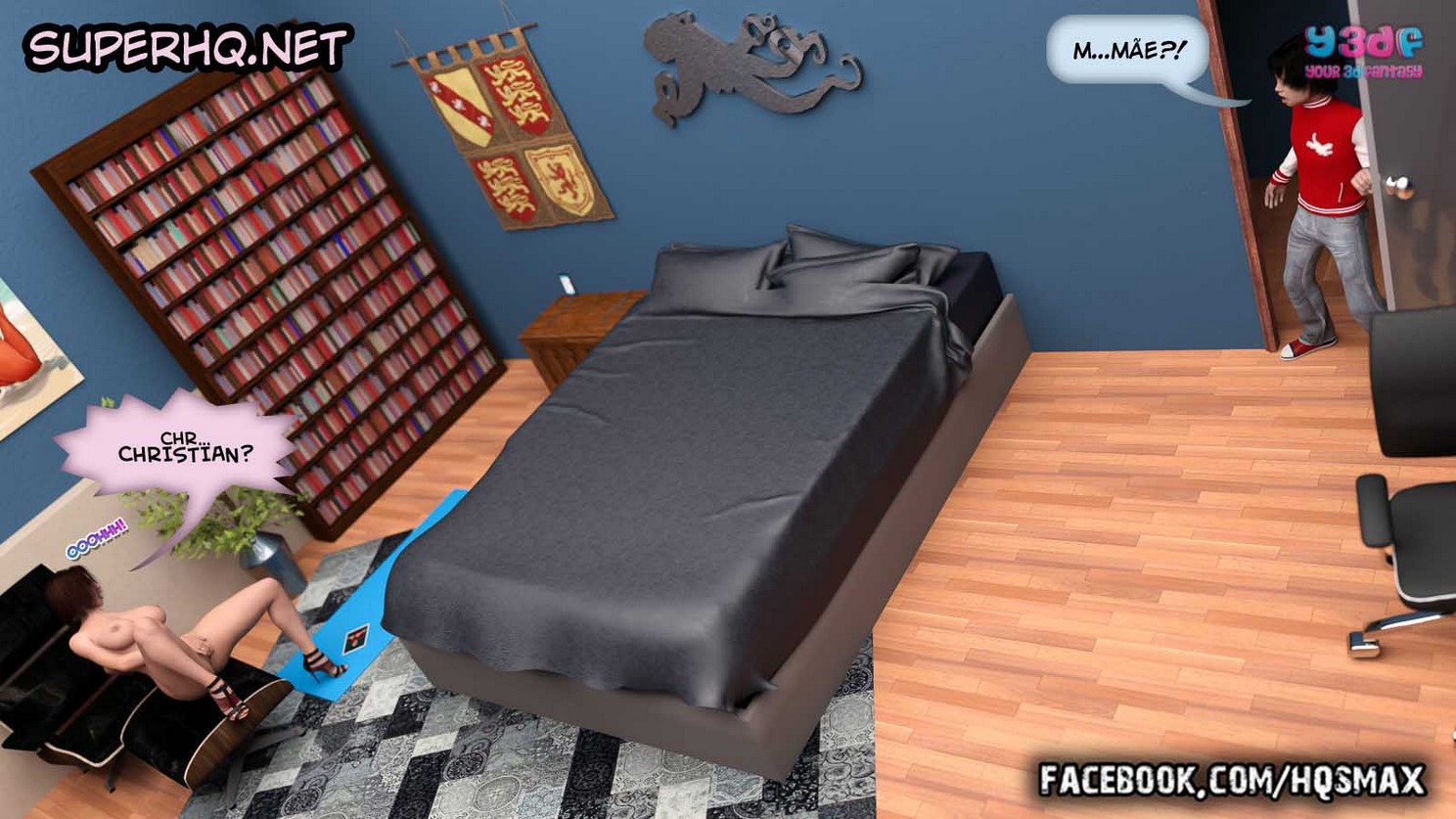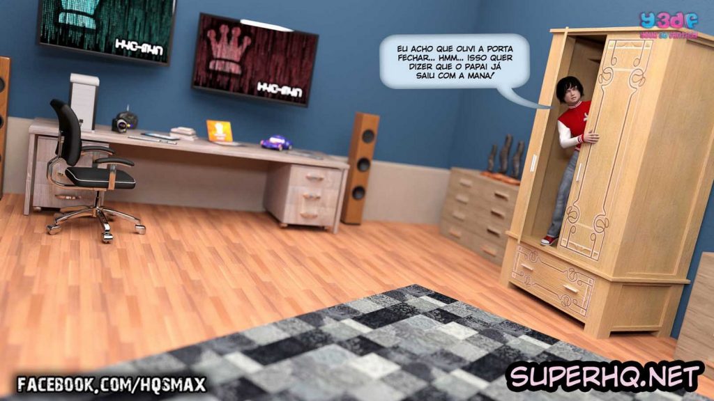 Parceiros e amigos visitantes do site Revista e Quadrinhos, Christian é um garoto nerd que adora “hackers” e fazer sacanagens com as outras pessoas. Desta vez, ele planeja se passar por outra pessoa no Y3DFBOOK, mas, para que tudo possa dar certo, ele precisa fazer alguns testes antes. E a sua cobaia para os testes, será a sua mãe gostosa e safada, que vai cair nessa sua pegadinha e vai dar um verdadeiro “show” com direito a boquete, anal e rola na buceta molhadinha da mamãe, para o delírio do garoto.